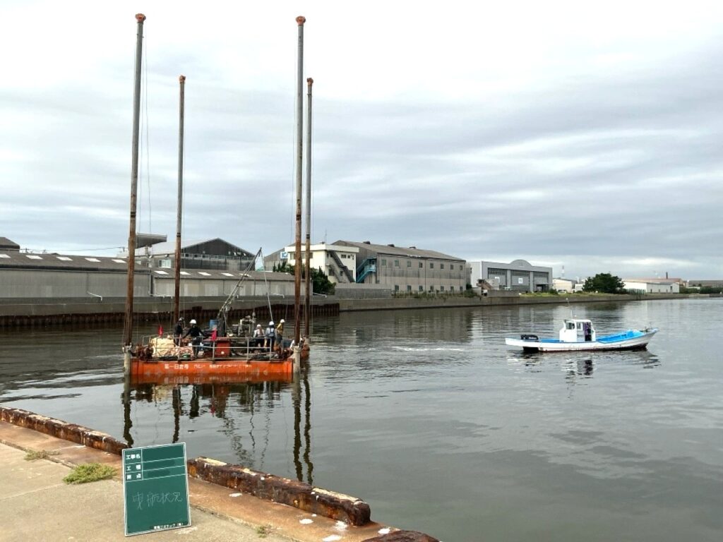 お知らせ 導入事例を更新しました 三河港海上ボーリング調査 三河港で海上ボーリング調査を行いました 場 所:愛知県豊橋市明海町調査内容:海上ボーリング2ヶ所 延べ28m 現場が会社の目の前で、台船の組立・移動を効率的にでき、安全に作業が進められました 施工実績はこちら