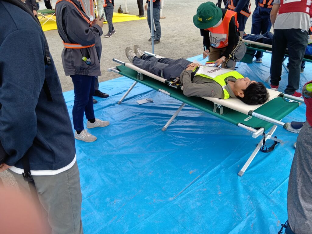 今回は負傷者の出血・骨折時の応急処置の方法を学び、負傷者の搬送・トリアージ訓練を行いました