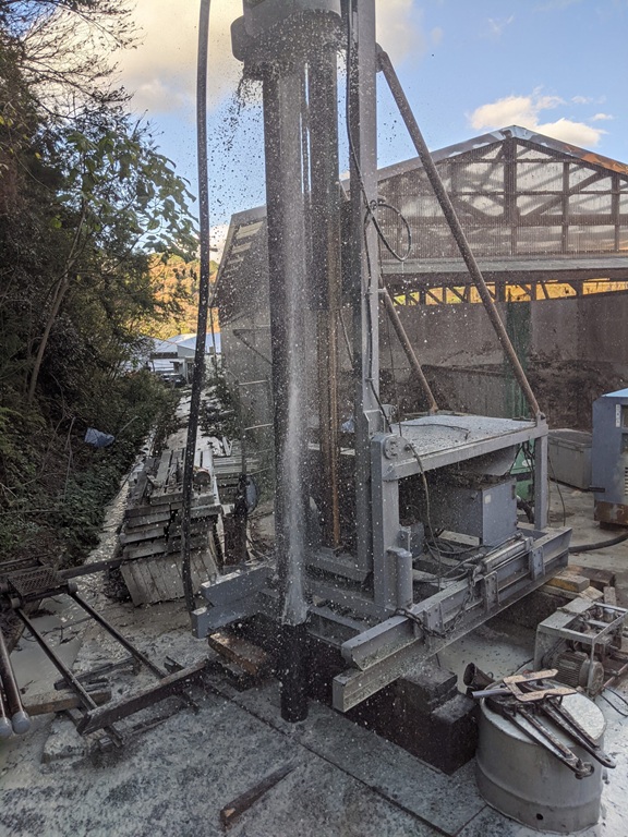 掘削ロッドに先端ビットを取り付け、ボーリングマシンにて回転、掘りくずはビット先端から噴出する泥水を循環させ掘削する工法です。